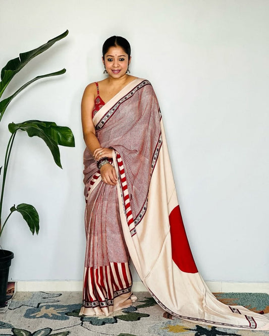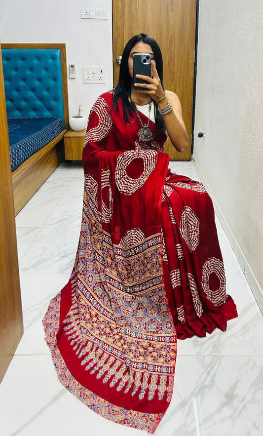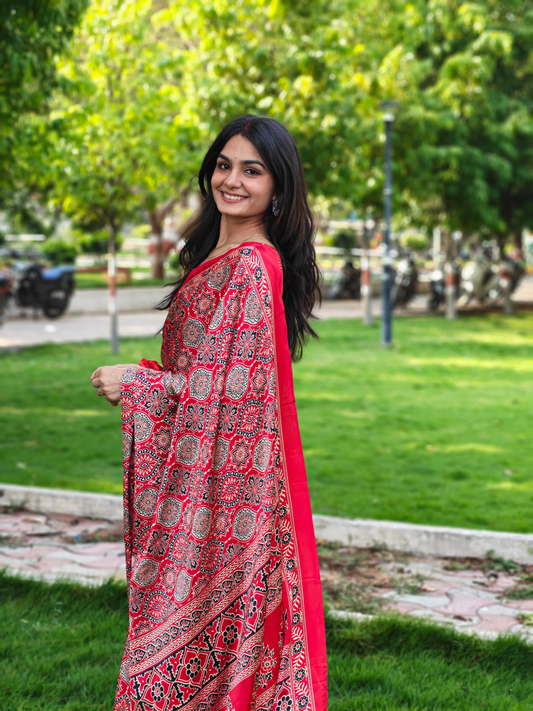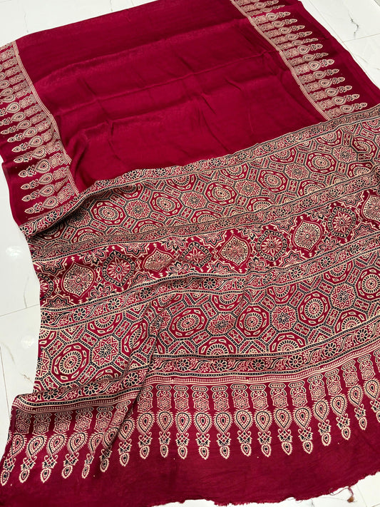 Ajrakh Modal Silk Saree
