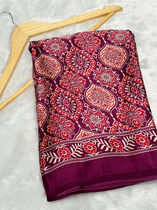 New Ajrakh Modal Silk Ajrakh Fancy Pallu Saree Available in modal silk ajrakh natural mill...