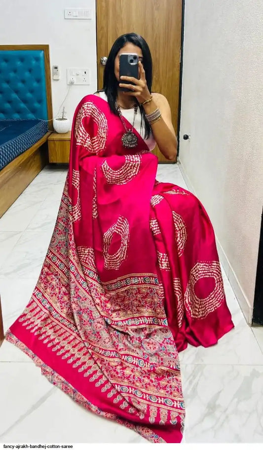 New ajrakh modal Silk Ajrakh Fancy pallu saree Available in modal silk ajrakh natural mill...