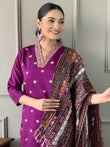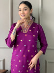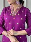 Beautiful Wine Viscose Chanderi Fabric Kurtis Pant Set